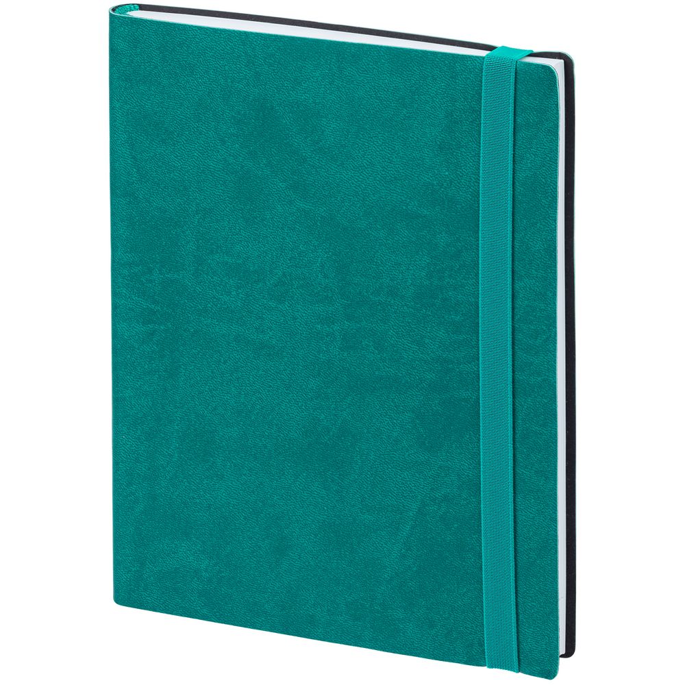 Ежедневник с гибкой обложкой выполнен из материала Brand, морская волна II, и дополнен резинкой шириной 1 см, капталом и ляссе в цвет обложки.