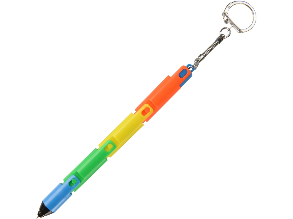 Яркая, необычная ручка-трансформер может складываться в разноцветный брелок-фонарик, имеющий три режима: обычный, ультрафиолет и мигающая всеми цветами радуги подсветка. Ручка приведет в восторг взрослых и детей. Тампопечать (1 цвет (цветные изделия)) на данный товар осуществляется бесплатно. Оплачивается только настройка оборудования в размере 4500 рублей на весь тираж.